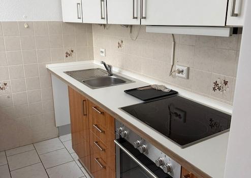 - Einbauküche mit E-Herd, Backofen und Spüle