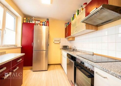 Die Küche ist separat und funktional gestaltet, mit modernen Einbaugeräten ausgestattet und bietet ausreichend Stauraum für alle Küchenutensilien. Sie ist ebenfalls vom Flur erreichbar, was kurze Wege beim Servieren von Mahlzeiten ermöglicht.
