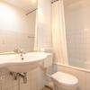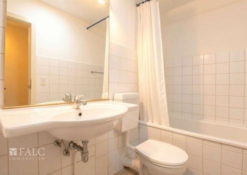 Das Badezimmer ist klassisch gefliest und verfügt über eine Badewanne, die zum Entspannen einlädt. Ein Waschmaschinenanschluss ist ebenfalls vorhanden, was den Alltag erleichtert.