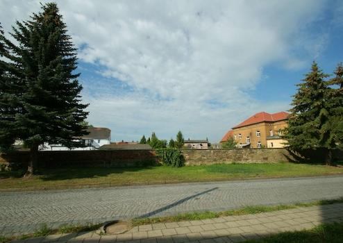 Eine Zufahrt kann zukünftig bequem über einen geplanten Mauerdurchbruch an der Straße der Einheit realisiert werden. Alle wichtigen Versorgungsanschlüsse (Strom, Wasser, Abwasser, Gas) befinden sich bereits straßenseitig in unmittelbarer Nähe.