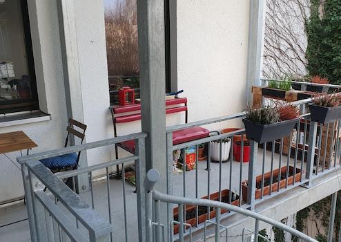 Der zur Wohnung gehörende Balkon lädt dazu ein, ihn mit Küchenkräutern oder Blumen zu gestalten und bietet den idealen Ort, um nach Feierabend oder am Wochenende zu entspannen.