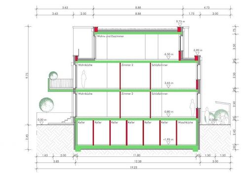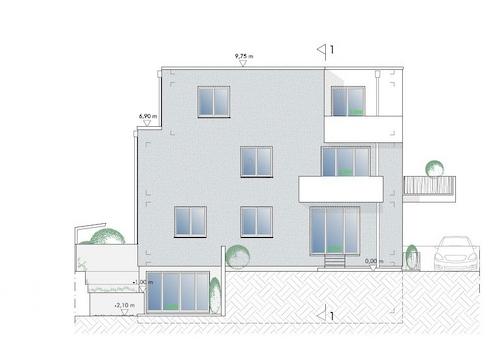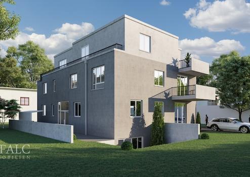 Die hier angebotene 4-Zimmer Wohnung mit der Nummer 4 und 97,3 m² Wohnfläche, bietet noch ein Bad, ein Gäste-WC, einen Balkon und befindet sich im Obergeschoß. Das geplante Mehrfamilienwohnhaus wird in sogenannter Massivbauweise als dreigeschossiges Gebäude mit zurückspringendem Staffelgeschoss als KfW 55 Haus errichtet. Das Dach ist ein Flachdach mit umlaufender Attika. Je Geschoss werden zwei Wohnungen und im Untergeschoss und Dachgeschoss/Penthouse je eine Wohnung erstellt, die Wohnungen im Erdgeschoss sind barrierefrei.