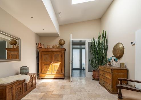 Innenausstattung: Hochwertige Böden (Parkett, Holzdielen, Travertin), 3 Badezimmer + 3 Gäste-WCs. Küchen können übernommen werden.