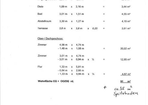 - Wohnfläche ca. 91 qm im Erd-, und Obergeschoss, zusätzlich ca. 35 qm im ausgebauten Spitzboden