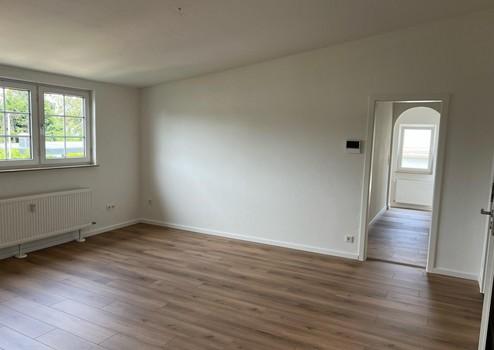 Die Wohnung im Obergeschoss überzeugt mit einer klugen Raumaufteilung und viel natürlichem Licht. Das großzügige Wohnzimmer (ca. 25 m²) und die separate Küche (ca. 14 m²) bieten komfortablen Wohnraum für Paare und Familien.