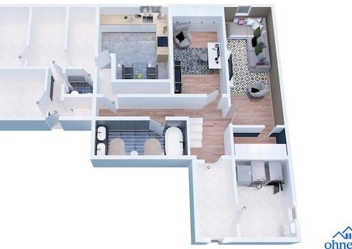 - EG rechts ca. 70 m² mit zwei Zimmern und Hauswirtschaftsraum;
