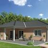 Jede Menge Platz, keine Stufen und einen großen Wohnbereich bietet dieser Winkelbungalow. Durch die kluge Aufteilung erhalten Sie Zugang zur Terasse von der Küche als auch vom Wohnbereich aus.
