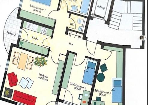 Balkon, Keller, Fahrstuhl, Vollbad, Duschbad, Einbauküche, Gäste-WC