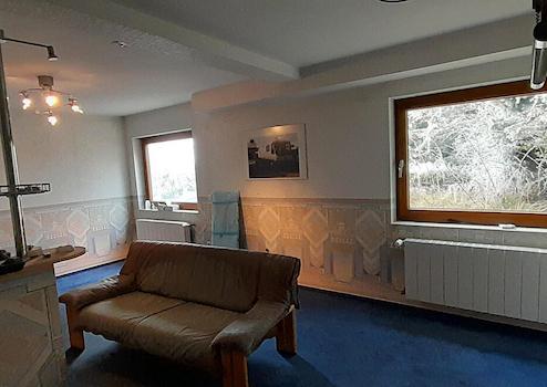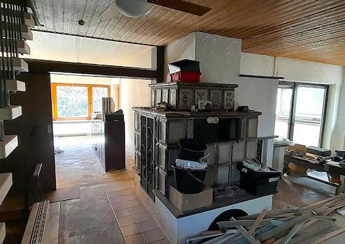 Der großzügige Wohnbereich mit Kachel- und Schwedenofen bildet das Herz des Hauses - ein Ort