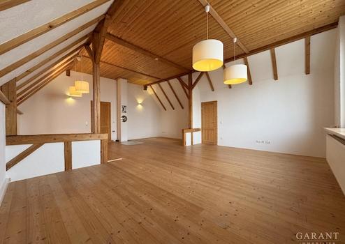 Das Obergeschoss ist derzeit über einen separaten Zugang erreichbar, kann jedoch problemlos mit dem Erdgeschoss intern verbunden werden. Highlight ist hier das beeindruckende Dachstudio mit seinen über 51 qm, hohen Decken, Sichtbalken und besonderem Raumgefühl. Ergänzt wird diese Ebene durch eine Ausbaureserve von ca. 28 qm. Ob als Atelier, geräumiger Hobbybereich, separate Wohneinheit oder zukünftige zusätzliche Schlafräume mit weiterem Bad - hier eröffnen sich vielfältige Nutzungsmöglichkeiten! Das Haus eignet sich ideal für Familien, die großzügiges Wohnen im Landhausstil schätzen und die Ruhe sowie den Blick ins Grüne lieben. Viel Platz im Innen- und Außenbereich bietet ideale Bedingungen für Kinder und Freizeit. In der Einfahrt befinden sich zwei Stellplätze und es besteht die Option, eine Garage oder ein Carport im Garten zu errichten.