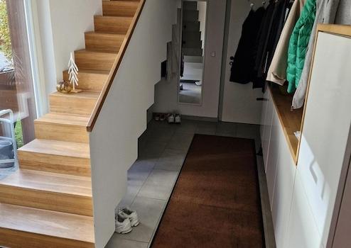 Das Haus wurde 2020 erbaut und überzeugt durch eine Ausstattung, die Design, Komfort und Alltagstauglichkeit souverän verbindet. Auf rund 188 m² Wohnfläche, verteilt auf vier Etagen, bietet es Raum für unterschiedliche Lebensmodelle – großzügig, flexibel und lichtdurchflutet.