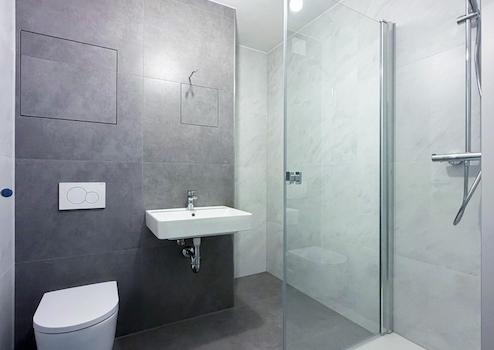 + Großformatige Wand- und Bodenfliesen (60 × 120 cm)