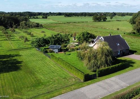 Unverbaute rückwärtige Ansicht, mit Blick auf Wiesen, Wallhecken und Bäumen