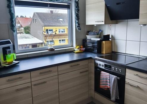 Die Wohnung verfügt über ein modernes Badezimmer mit Badewanne und Dusche. Der Küchenbereich ist mit einer Einbauküche inklusive Elektrogeräten ausgestattet (unter anderem Kochfeld, Backofen und Dunstabzug). In den Wohnräumen sorgen wohnliche Bodenbeläge für eine angenehme Atmosphäre, während Fliesenbereiche in typischen Funktionszonen wie Flur und Küche die Alltagstauglichkeit erhöhen. Ein Stellplatz gehört ebenfalls zum Mietangebot.