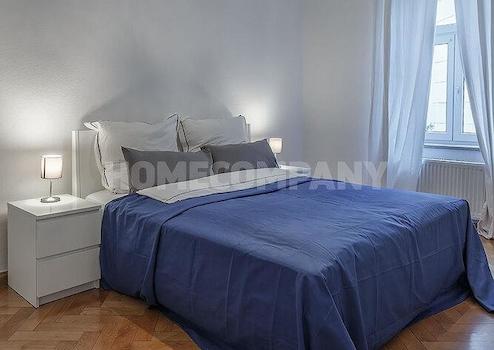 Möblierte 4-Zimmer-Altbauwohnung mit Balkon und 2 Bädern in München-Neuhausen. Die Altbauwohnung liegt im 1. OG. Großes Wohnzimmer mit 2 Sofas, Flatscreen-TV und Leseecke. Es sind drei Schlafzimmer vorhanden. Das Hauptschlafzimmer ist mit einem Doppelbett (180x200 cm), Kleiderschrank, Flatscreen-TV und einem Arbeitsplatz versehen. Die beiden weiteren Schlafzimmer sind mit je zwei Einzelbetten (120x200 cm), Flatscreen-TV, Kleiderschrank und Arbeitsplatz ausgestattet. Auf Anfrage besteht hier die Möglichkeit die Anzahl der Einzelbetten zu verringern. Wohnküche mit Kühlschrank, Mikrowelle, Cerankochfeld und Backofen, Spülmaschine, Esstisch für 4 Personen und Zugang zum Balkon. In der Wohnung gibt es zwei Bäder mit Badewanne und Handtuchheizung - eines mit WC, Waschmaschine und Fenster. Ein Extra-WC steht ebenfalls zur Verfügung. Ein zusätzlicher Wäschetrockner befindet sich im Abstellraum, der vom Flur aus begehbar ist. Bodenbelag: Parkett in den Wohn-/Schlafräumen, Linoleum in der Wohnküche, Fliesen in den Bädern. Eine Internetflatrate ist im Mietpreis inbegriffen. Ein Tiefgaragenstellplatz kann auf Anfrage zzgl. für 120,00 EUR/Monat angemietet werden. GEZ und Stadtwerke müssen vom Mieter selbst angemeldet werden. Miete zzgl. Strom und Heizung. Haustiere sind erlaubt. Geschäfte, Restaurants, Bars, Cafés etc. sowie öffentliche Verkehrsmittel in nächster Nähe.