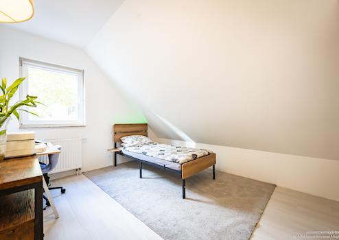 Das Dachgeschoss überzeugt mit einer klaren und gut nutzbaren Aufteilung. Neben einem Schlafzimmer stehen Ihnen zwei weitere Zimmer zur Verfügung, die individuell als Kinder-, Gäste- oder Arbeitszimmer genutzt werden können. Ein freundlich gestaltetes Tageslichtbad mit Badewanne rundet diese Ebene ab und sorgt für zusätzlichen Wohnkomfort.