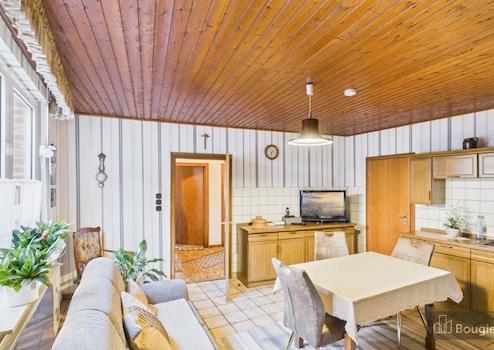 Das ehemals landwirtschaftlich genutzte Objekt steht auf einem großen Grundstück mit verschiedenen Nebengebäuden zur individuellen Nutzung. Das Wohngebäude an der Straßenseite ist in zwei separate Wohneinheiten aufgeteilt. Der Zugang zur Erdgeschosswohnung mit einem Bad, zwei Schlafzimmern, einer großen Küche nebst Abstellraum und dem ebenfalls großzügig geschnittenen Wohn-/Esszimmer befindet sich an der Hausfront. Vom Abstellraum führt Dich eine Treppe in den Keller mit zwei Nutzräumen als Abstellfläche. Hier sind auch die Hausanschlüsse zu finden. Im Innenhof bieten diverse weitere Räume zusätzliche Nutzflächen als Abstellräume und ähnliches. Auch die moderne Pelletheizung inkl. dem Lager für die Holzpellets befindet sich in einem der Räume.