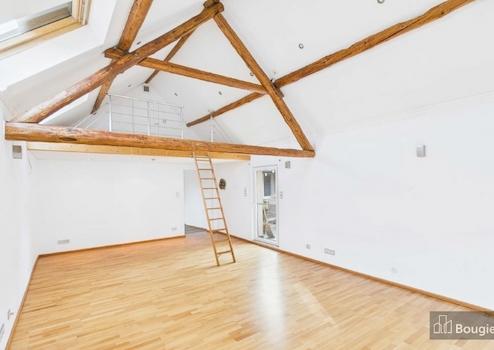 Über eine Treppe im Innenhof erreichst Du die zweite Wohneinheit, die ab 2004 zu Wohnraum um- und ausgebaut wurde. Diese modern geschnittene Einheit ist aufgeteilt in den Flur mit Zugang zum Badezimmer mit bodengleicher Dusche, zum Arbeitszimmer, zur Küche, von dort weiter zum großen Wohn-/Esszimmer mit einer Empore. Über einen zweiten Flur erreichst Du ein weiteres Zimmer und das große Schlafzimmer. Ein Zugang zum Spitzboden und ein außerhalb der Wohnung liegender Abstell- und Hauswirtschaftsraum vervollständigen die obere Einheit.