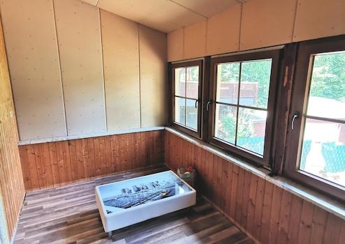 Balkon, Terrasse, Wintergarten, Garten, Keller, Duschbad, Einbauküche, Gäste-WC, Fliesen