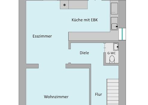Flur - Diele – Treppe zum OG / UG hin - Gäste-WC - Küche mit moderner EBK (neuwertig) – Esszimmer - Wohnzimmer (offen zum Esszimmer und der Küche hin) - Arbeitszimmer / Spielzimmer