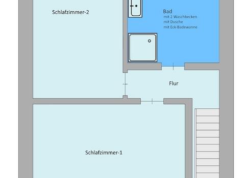 Flur - Schlafzimmer-1 - Schlafzimmer-2 - Tageslichtbad mit Dusche, Eckbadewanne, WC und 2 Waschbecken