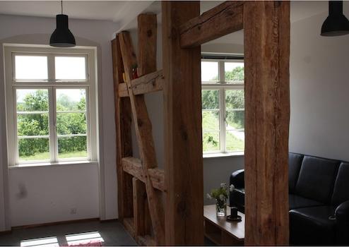 • Fachwerk im Großteil der Wohnungen, • teilweise Lehmputz