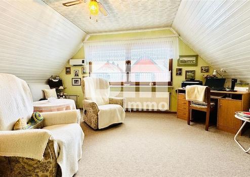 Doppelhaushälfte BJ 1950, WFL. ca 115 m², Grundstück 627m², vollständig gedämmter Dachboden, Fassade vollgedämmt, Fassade verkleidet/verklinkert, Leichtbautreppe Holz zum OG/DG, Doppelgarage ca. 40m² (1x Kipptor mechanisch/ 1x Kipptor elektrisch), Carport groß 29m², Carport klein 20m², vollumzäuntes Grundstück, großer Innenhof/teilüberdacht, angelegter Gartenbereich mit Brunnen vor dem Haus, angelegter Garten mit Bachlauf hinter dem Haus, Sat TV/DSL/Kabel TV