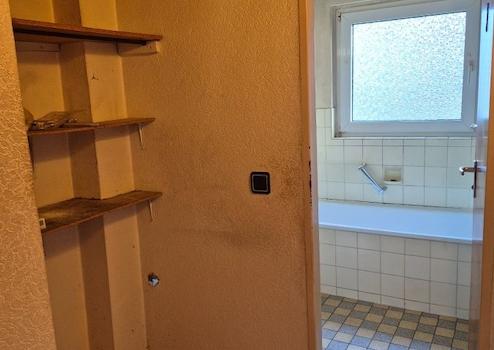 Die Wohnung selbst befindet sich überwiegend im ursprünglichen Zustand und bietet Renovierungspotenzial. Das Badezimmer stammt weitgehend aus dem Baujahr2000 und könnte komplett erneuert werden. Auch Malerarbeiten, Bodenbeläge ( teilweise) sowie einzelne elektrische Installationen könnte man modernisieren. Diese Gegebenheiten ermöglichen eine individuelle Gestaltung nach eigenen Vorstellungen