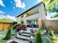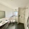 Großzügiger Eingangsbereich bzw. Diele, ein helles Schlafzimmer, ein gut geschnittenes Büro oder Gästezimmer, ein großes, lichtdurchflutetes Wohnzimmer mit angrenzendem Essbereich und bodentiefen Fenstern als Ausgang auf den überdachten Balkon. Von hier aus hat man eine tolle Aussicht in den wunderschön angelegten Garten mit Teich. Eine hell geflieste Küche (die abgebildete Einbauküche ist nicht Bestandteil der Wohnung), ein, im letzten Jahr hochwertig erneuertes, Tageslichtbad mit ebenerdig begehbarer Dusche und Waschtisch, ein separates WC, sowie ein Abstellraum sind ebenfalls vorhanden. In den Wohnräumen wurde Laminatboden verlegt, das neue Badezimmer wurde mit einer grauen Bodenfliese ausgestattet.