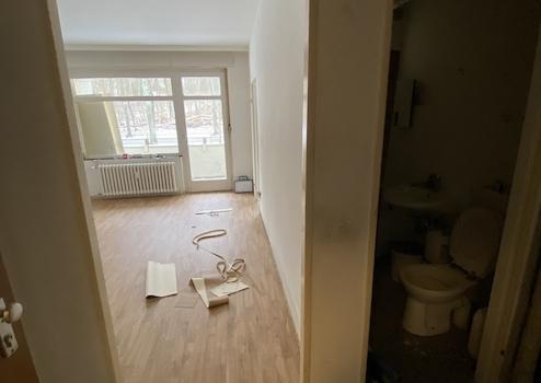 Unsere 1-Zimmer Appartments verfügen über einen Wohnraum mit Schlafnische, eine kleine Küche, ein Bad (Dusche oder Wanne) mit WC und einen Balkon. Ein Kellerraum gehört ebenfalls zur Wohnung. Der Gebäudekomplex hat einen Personenaufzug und es stehen den Mietern Waschmaschinen in der Waschküche zur Verfügung. Die Wohnanlage ist barrierearm. Um das Gebäude lädt ein großer Gartenbereich zum Verweilen ein. Die Wohnung ist renovierungsbedürftig. Die noch anfallenden Maler- und Renovierungsarbeiten sind vom neuen Mieter in Eigenleistung zu tragen.