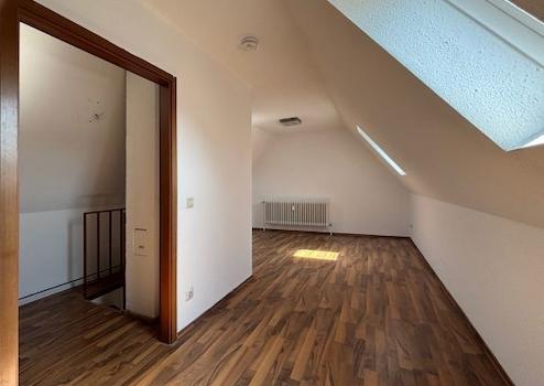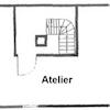 Eine Wendeltreppe im Flur führt ins Atelier. Hier befindet sich ein ebenfalls mit Laminatboden ausgelegter großer Raum, der vielseitig nutzbar ist. Die drei Dachflächenfenstern sorgen für ausreichende Belichtung. Es besteht die Möglichkeit den Raum zu unterteilen.
