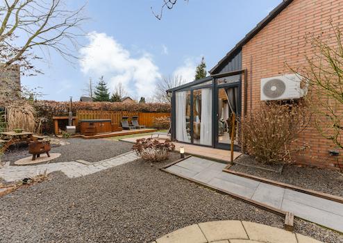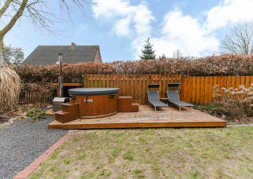 Der Außenbereich überzeugt durch eine durchdachte und hochwertige Gestaltung. Ein liebevoll angelegter, separater Hundebereich bietet optimale Bedingungen für Vierbeiner, ohne die Gesamtästhetik des Gartens zu beeinträchtigen. Die großzügige Terrasse lädt zu entspannten Stunden im Freien ein, während der Jacuzzi für zusätzlichen Komfort und echtes Wellness-Ambiente sorgt. Die gepflegte Gartenanlage rundet das Gesamtbild harmonisch ab und schafft eine private, grüne Oase mit hohem Erholungswert.