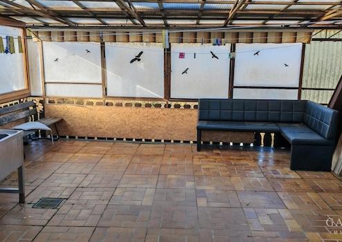Ca. 45 qm große, überdachte Terrasse im Obergeschoss, baulich mit der Scheune verbunden