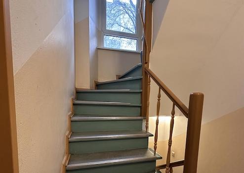 Mehrfamilienhaus Bj. 1910, 35 Wohnungen, Gebäudenutzfläche 1.969,8 qm, Seitenflügel 1,5 Zimmer (Wohn-und Essbereich), Schlafzimmer, Küche, Duschbad und ein Kellerabteil, monatliches Hausgeld: 269,50 Euro