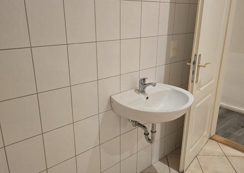 Badewanne, Fliesenboden, kein barrierearmer Zugang bis zum Mietobjekt (ab 4 Stufen), Fernheizung/Zentralheizung, Warmwasserversorgung dezentral - Warmwasserspeicher, Linoleum, Holzdielen, Spüle, Elektroherd mit Ceranfeld, Handtuchheizkörper
