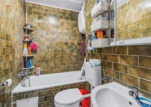 Das innenliegende Badezimmer ist mit einer Badewanne ausgestattet.