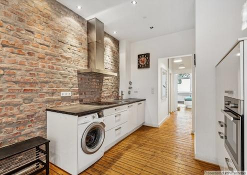 Schöne Wohnung im Erdgeschoss eines Mehrfamilienhauses in Düsseldorf Flingern. Das Besondere dieser Wohnung ist der Altbaucharme mit seinen ca. 2,70 m hohen Decken, der schöne, alte aufgearbeitete Dielenboden, der gute Grundriss und die Ziegelsteinwand in der Küche. Es handelt sich um ein Nichtraucher-Angebot.