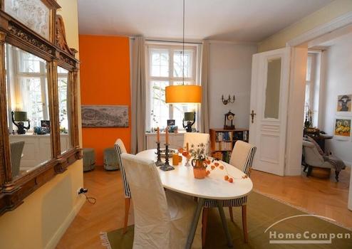 Diese beeindruckend große, voll möblierte Wohnung mit drei Schlafzimmern befindet sich in einer charmanten historischen Stadtvilla im begehrten Ludwig Hoffmann Quartier in Pankow. Das denkmalgeschützte, weitläufige Areal mit parkähnlichem, idyllischem Garten bietet eine außergewöhnliche Kombination aus urbaner Nähe und wohltuender Ruhe.