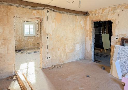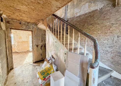 Bei dieser Immobilie handelt es sich um ein ehemaliges Bauernhaus aus schätzungsweise 1919, das seit 2022 bereits im Außenbereich saniert wurde. Im Zuge der Sanierung wurden die Fassade, das Dach sowie die Fenster erneuert. Im linken Gebäudebereich befindet sich eine kleine, bezugsbereite Wohnung, bestehend aus Küche, Wohnzimmer, Duschbad und Schlafzimmer. Der Innenbereich des rechten Gebäudeteils befindet sich im entkernten Zustand. Sämtliche Innenausbauten wurden entfernt, das Gebäude präsentiert sich im Rohbauzustand mit freigelegten Wänden, Decken, Böden. Erste Arbeiten an der Elektrik wurden bereits begonnen, jedoch noch nicht abgeschlossen. Die Elektrioverteilung im OG wurde komplett verlegt. Es bietet vielfältige Ausbaureserven zur individuellen Gestaltung von zusätzlichem Wohnraum. Ursprünglich war der Ausbau zu einem Mehrfamilienhaus mit 2 weiteren Einheiten vorgesehen, wodurch sich das Objekt besonders für handwerklich versierte Käufer oder Investoren eignet, die den verbleibenden Sanierungsaufwand bewusst einkalkulieren. Nach Fertigstellung könnte eine Wohnfläche von schätzungsweise 350 m² erzielt werden.