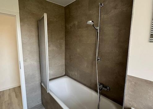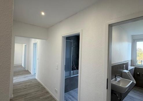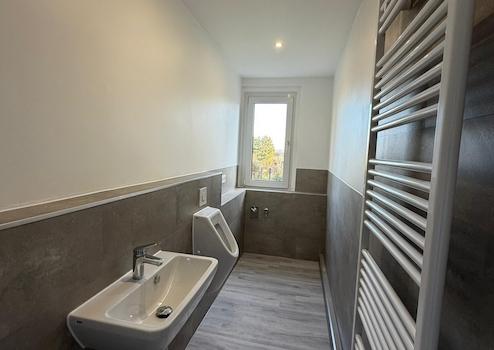 Das lichtdurchflutete Tageslichtbad präsentiert sich als Wohlfühlbereich – klar strukturiert, hochwertig ausgestattet und mit einer stilvollen Dusch-/Badewanne, einem großzügigen Handtuchheizkörper sowie erstklassiger Keramik versehen. Ein Raum, der Entspannung auf modernem Niveau ermöglicht. Ergänzt wird dieser Komfort durch ein neu geschaffenes Gäste-WC mit modernem Urinal ebenso einem großzügigen Handtuchheizkörper und Waschmaschinenanschluss.