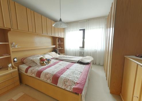 Die Wohnung besteht aus 3,5 Zimmern, darunter zwei Schlafzimmer, die für Ruhe und Erholung sorgen. Das Badezimmer ist hell und freundlich und verfügt über eine Wanne sowie eine Dusche. Ein Gäste-WC bietet zusätzlichen Komfort. Die Einbauküche ist perfekt für Selbstversorger und lädt zum Kochen ein.