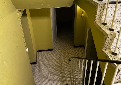 Über das massive Treppenhaus gelangt man in das Obergeschoss.