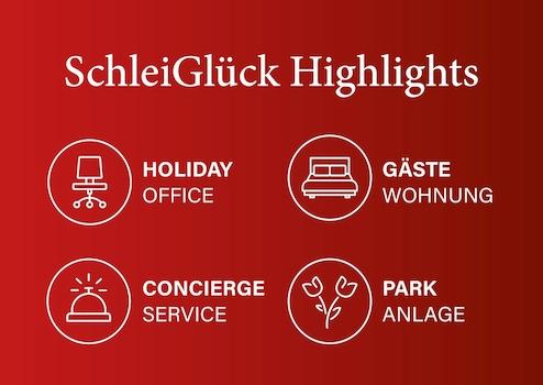 Auf fünf ansprechende Wohnquartiere sind 49 stilvolle Wohnungen verteilt, bei denen es sich um 2- bis 4-Zimmer-Wohnungen mit großzügigen Gesamtflächen von ca. 60 m² bis ca. 130 m² handelt. Jede Wohnung verfügt zudem über eine Terrasse, Balkon oder Dachterrasse mit atemberaubendem Schleiblick! Mithilfe des Personenaufzugs ist ein bequemer Zugang zu allen Etagen gegeben. Diese Wohnungen sind aufgrund ihrer individuellen Größen für Singles, Paare oder Familien und daher für alle Generationen bestens geeignet.