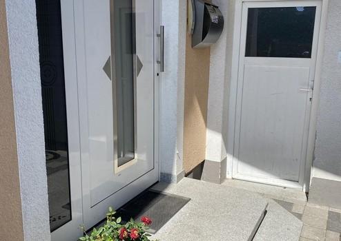 Die 2018 neu angelegte Terrasse ist mit modernen Feinsteinzeugfliesen ausgestattet und verfügt über eine fest installierte, multifunktionale Pergola mit dreiseitig absenkbaren Screens/Fliegengittern (elektrisch betrieben) sowie einem 270° drehbaren Lamellendach mit integrierter Beleuchtung. Zwei Balkone erweitern den Wohnkomfort im Obergeschoss.
