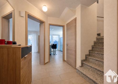 Diese Doppelhaushälfte überzeugt mit einer klar strukturierten und alltagstauglichen Raumaufteilung. Im Erdgeschoss befinden sich das helle Wohnzimmer, die separate Küche, ein Gäste-WC sowie der Hauswirtschaftsraum mit Fenster. Ein zusätzlicher, kleiner Raum unter der Treppe bietet praktische Abstellfläche und unterstützt eine geordnete Alltagsorganisation – ideal für Vorräte, Haushaltsutensilien oder Garderobe.