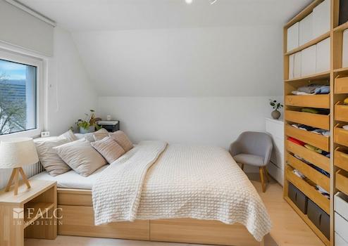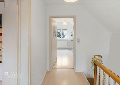 Im Dachgeschoss stehen weitere Räume zur Verfügung, die sich besonders als Schlaf und Rückzugsbereiche anbieten. Die Aufteilung unterstützt eine klare Trennung zwischen gemeinschaftlich genutzten Bereichen und privaten Zimmern, was den Tagesablauf angenehm strukturiert. Insgesamt verteilen sich die 5 Zimmer so auf die Etagen, dass sowohl Familienleben als auch Arbeiten von zu Hause gut nebeneinander Platz finden können.