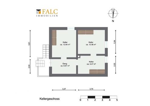 - Keller mit mehreren Räumen und Flur