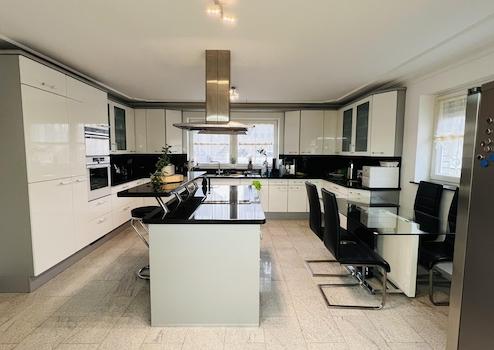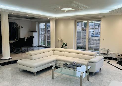 Angeboten wir hier ein Luxuriöse sehr Hochwertig Ausgestattete Wohnung über zwei Ebenen in einem drei Parteien Haus mit dem Flair eines Einfamilienhauses mit Kamer Überwachung nähe Golfplatz. Die Wohneinheit befindet sich im EG und UG und besteht aus insgesamt 7 Zimmern, Küche, Ankleidezimmer, Gäste WC und Badezimmer.