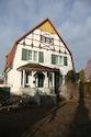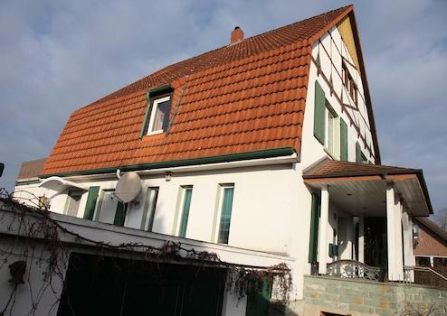 Das Haus präsentiert sich mit einer traditionellen Fachwerkgiebel, einem Mansarddach mit Dachsteinen sowie einem überdachten einladenden Eingangsbereich. Die äußere Erscheinung ist zeitlos und fügt sich harmonisch in die bestehende Nachbarschaft ein.