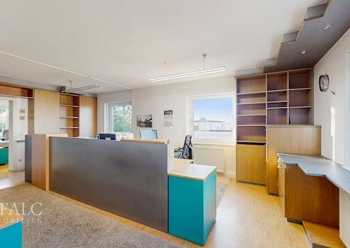 Das separat zugängliche Untergeschoss (bisher als Büro genutzt) verfügt über sieben helle, freundliche Räume, eine Teeküche, zwei separate WCs und eine kleine Terrasse. Dieser Bereich ist flexibel nutzbar, lässt sich leicht nach eigenen Wünschen anpassen oder kann zur Generierung zusätzlicher Einnahmen vermietet werden.